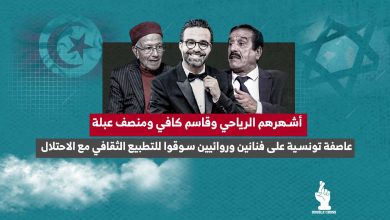أشهرهم الرياحي وقاسم كافي ومنصف عبلة .. عاصفة تونسية على فنانين وروائيين سوقوا للتطبيع الثقافي مع الاحتلال